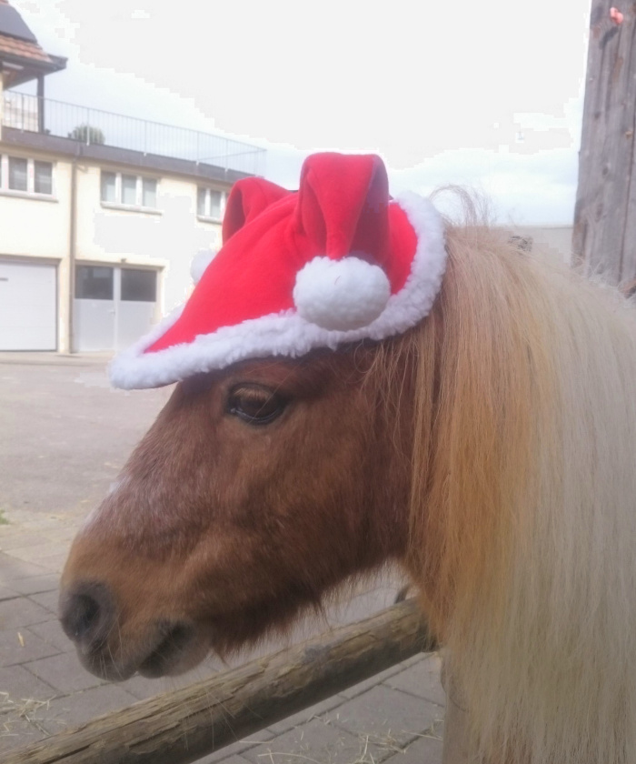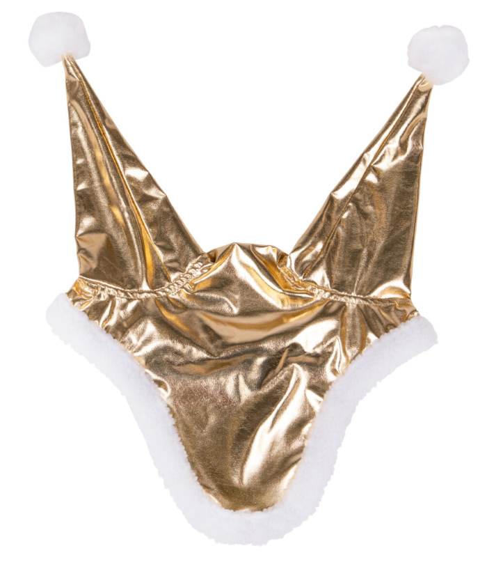 Zur Samichlauszeit die passende Ohrhaube. Verkleide dein Shetty als Chlausbegleiter mit diesem niedlichen Mützchen! Der rote oder goldene Stoff mit Pelzdetails macht das Weihnachtspony komplett.