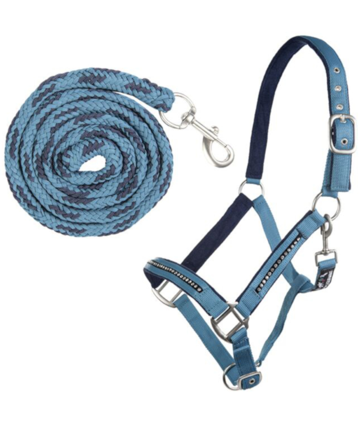 Das praktische Set besteht aus einem Halfter und einem passenden Führstrick.