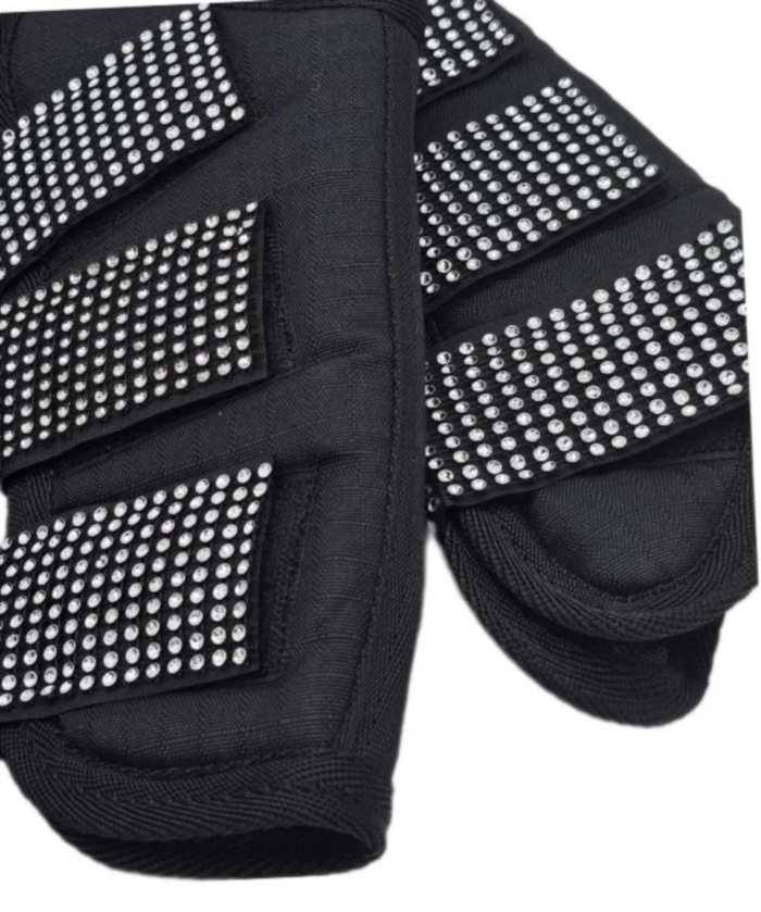 Schwarz mit Glitzersteinen über den Klettverschlüssen